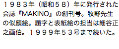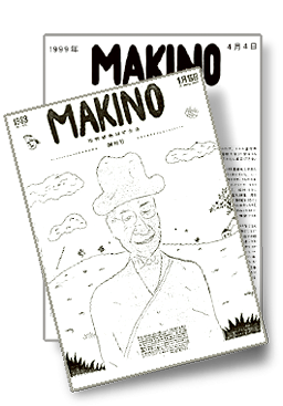 基本形は2005年の71号から現在まで続くデザイン。内容を目次として表紙に揚げ見やすくしている。飾りの植物画は牧野先生によるもので、先生が創刊した『植物研究雑誌』の表紙や採集会の案内葉書にも使用されたパターンによった。『Makino』誌71、73号、『MAKINO 80』に植物名など説明が載っている。89号から、本会100周年ということで、植物部分を緑色によるカラー化、題字を先生の自筆に因ることを試みた。